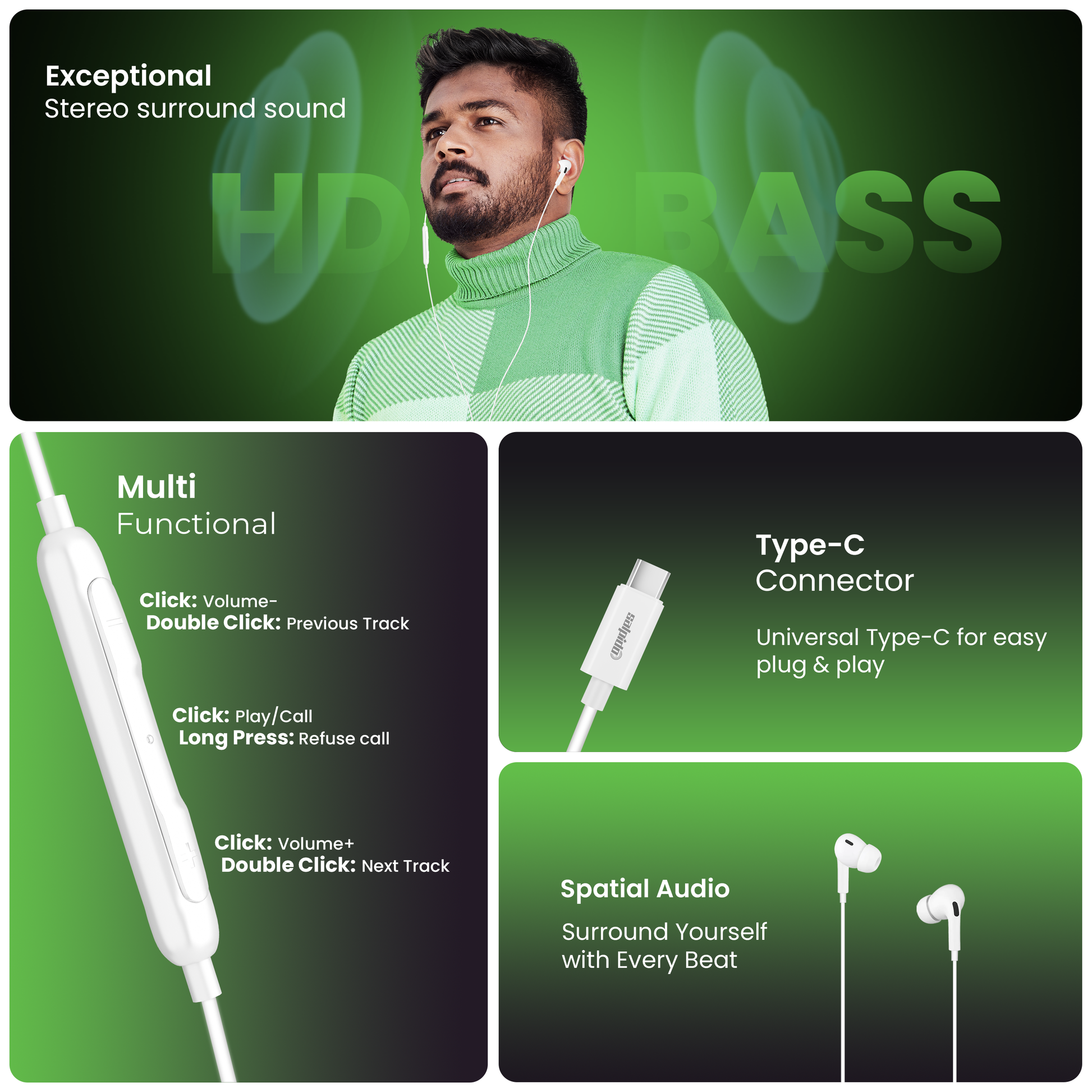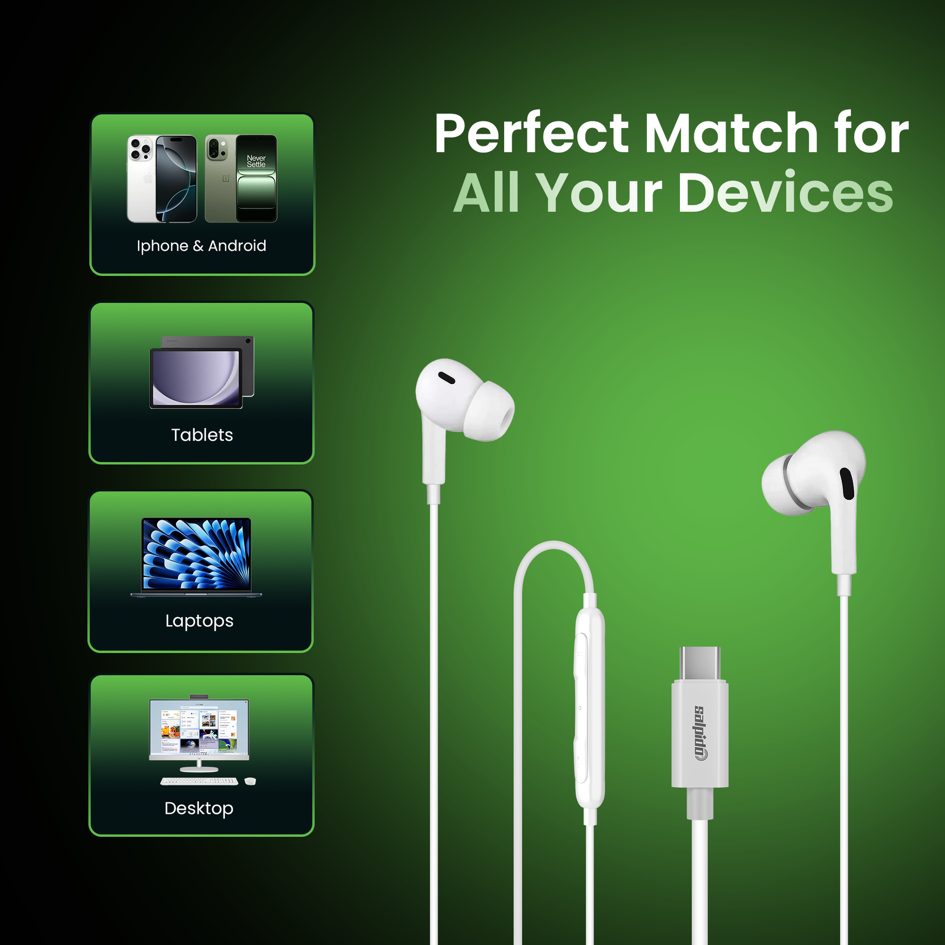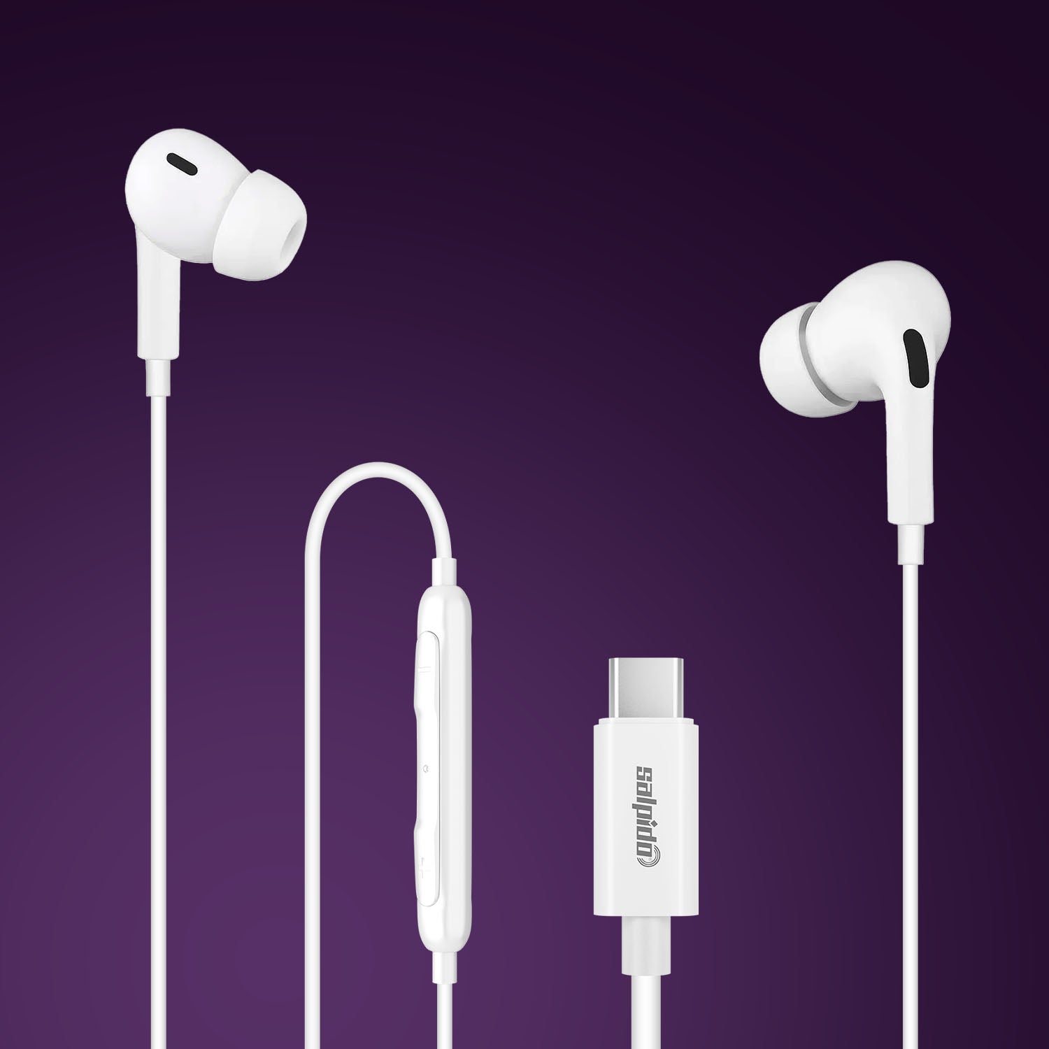Type-C Wired Earphones with 10mm Driver, Noise Isolation, Inline Mic & Multi-Size Eartips