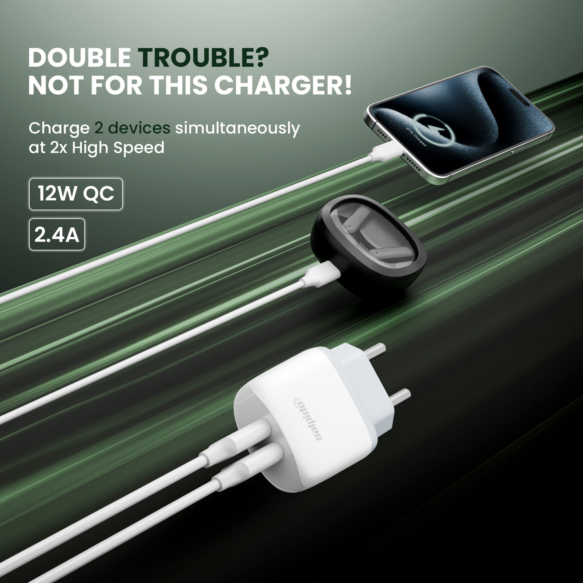 12W Wall Charger with Dual USB Ports, Smart Chip Protection & Compact Design